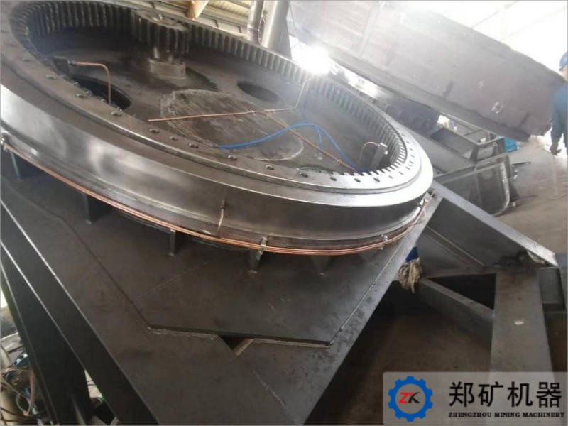 我司簽訂的湖北客戶120萬噸/年半水磷石膏綜合利用項目中圓盤造球機設備,其傳動部分不同于同系列一般造球機設備,利用回轉支撐裝置代替常規(guī)的齒輪組嚙合傳動,其安裝更簡單方便、易于操作封閉式的殼體,更容易維修,安全性、可靠性較高結構更加緊湊,更耐用,動力源可選?;剞D支承是介于機架與上部回轉盤體間作相對回轉運動的傳力原件,用于支承上車體質量和承受工作載荷,共內座圈鏈接下機體,外座圈鏈接上盤體,內座圈上的內齒圈與回轉小齒輪嚙合。當回轉齒輪轉動時,通過小齒輪帶動上盤體回轉。