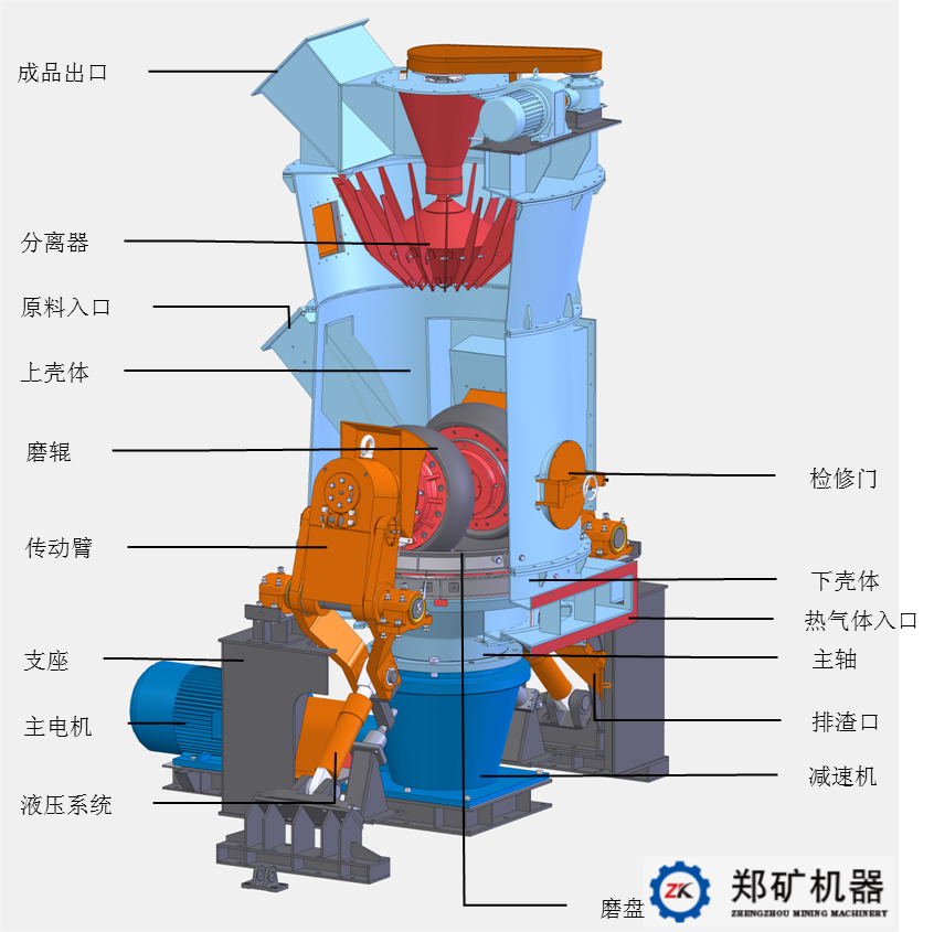 3、烘干能力強(qiáng),利用輔助熱源可烘干粉磨水分高達(dá)12%-15%的物料;